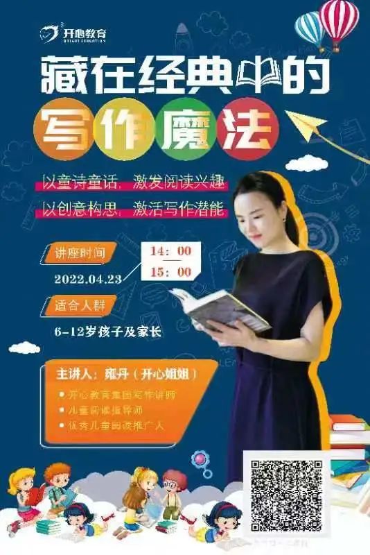 書香潤(rùn)校園·一堂開心讀寫魔法課,以童詩童話,激活孩子的閱讀興趣以創(chuàng)意構(gòu)思,激活孩子的寫作潛能快來掃碼預(yù)約直播吧。