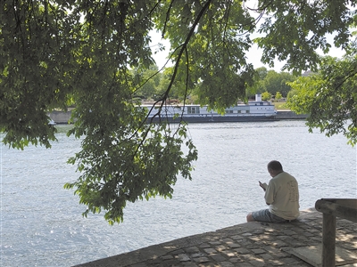在法國(guó)塞納河畔,一名讀者正在讀書。記者 劉玲玲攝