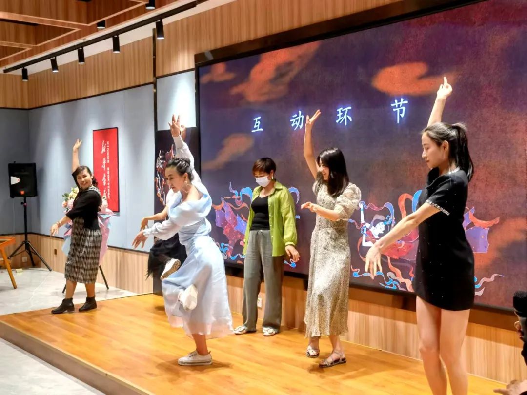 見面會(huì)還設(shè)計(jì)了互動(dòng)環(huán)節(jié),主編李莉現(xiàn)場(chǎng)教學(xué),五位敦煌舞愛好者認(rèn)真模仿,作者還向參與互動(dòng)的讀者贈(zèng)送了本書。在簽售環(huán)節(jié)后,作者及參演人員和讀者合影留念。