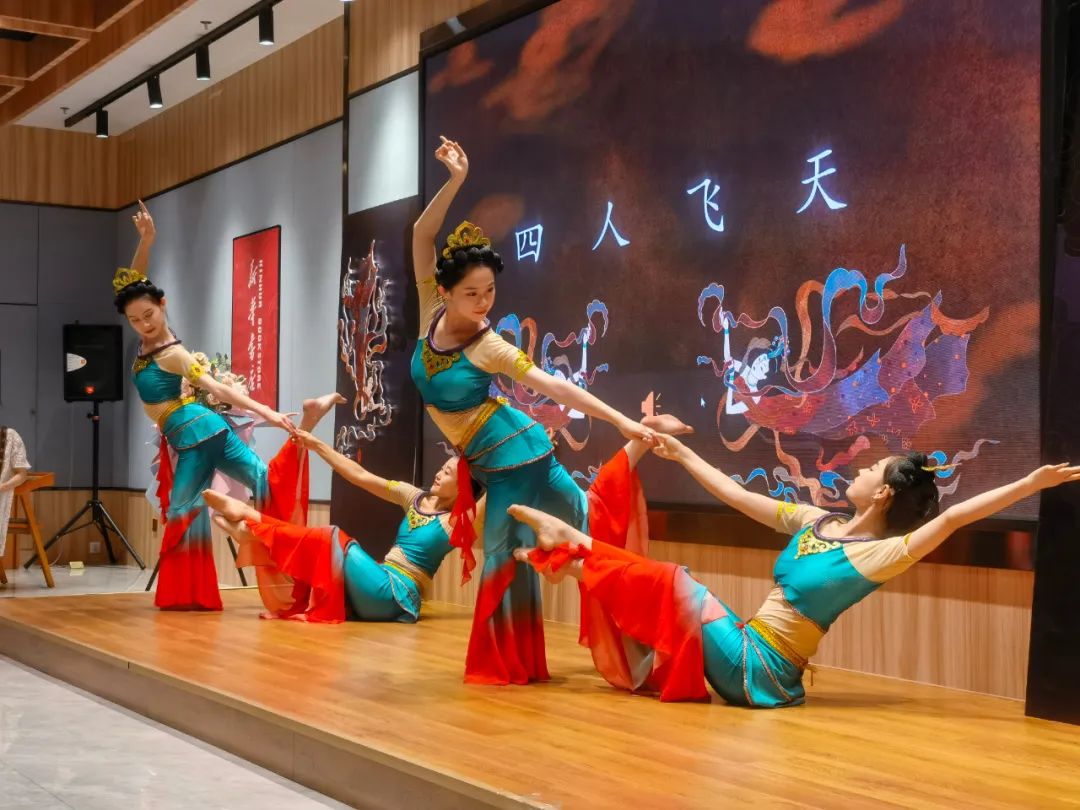 見面會(huì)現(xiàn)場(chǎng),作者介紹了本書創(chuàng)作歷程,并通過(guò)“形、神、氣、韻”“抻、曲”“舞姿控制”“四臂觀音”“四人飛天”“胡旋與琵琶”等組合精彩紛呈的表演,使讀者更加直觀地了解本書的主要內(nèi)容和敦煌舞蹈的文化內(nèi)涵,感受敦煌舞蹈?jìng)鬟f出的藝術(shù)價(jià)值、文化素養(yǎng)和無(wú)窮的魅力。