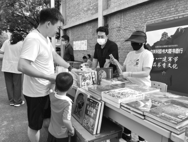 中關(guān)村圖書大廈攜手西郊機場居民委員會走進西郊機場家屬區(qū),開展“八一建軍節(jié) 品書香文化”主題宣傳活動。