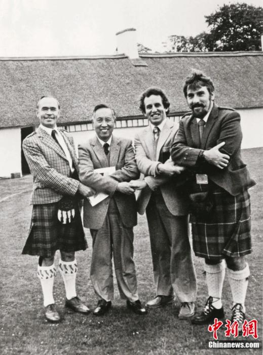 1982年7月,王佐良(左二)在蘇格蘭詩(shī)人彭斯的故鄉(xiāng)歐文城。王佐良是最早譯介彭斯的譯者之一。中新社發(fā) 受訪者供圖
