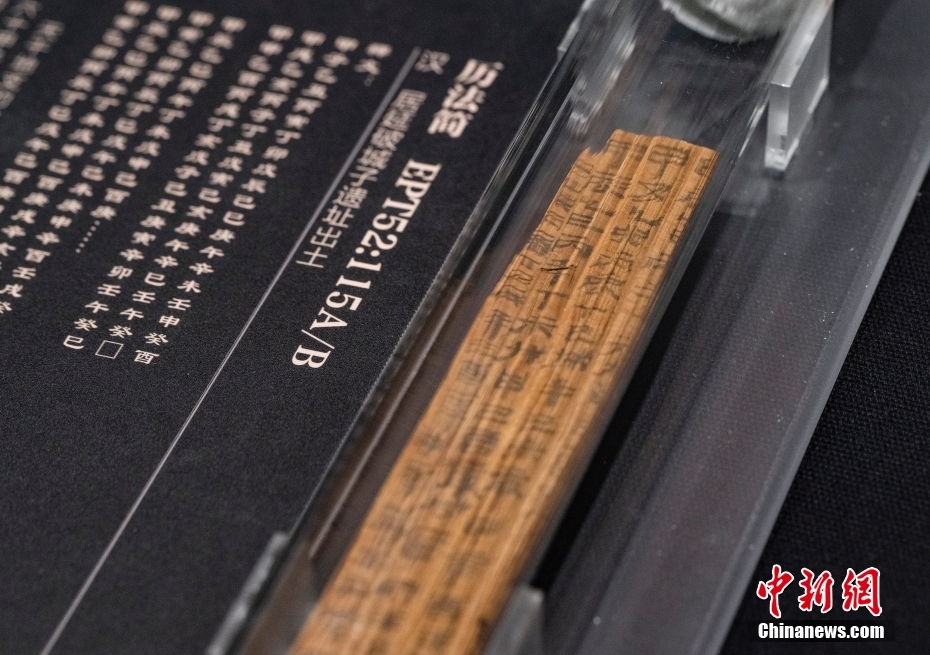 1月17日,“二十世紀(jì)初中國(guó)古文獻(xiàn)四大發(fā)現(xiàn)展”正在位于北京的國(guó)家典籍博物館內(nèi)展出。本次展覽分為“殷墟甲骨”“居延漢簡(jiǎn)”“敦煌遺書(shū)”“明清檔案”四個(gè)專題,首次將分藏于各處的四大文獻(xiàn)薈萃一堂,集中多種類型的珍貴文物文獻(xiàn)共249種,382件,是目前為止“四大發(fā)現(xiàn)”文物最大規(guī)模的展覽。圖為“居延漢簡(jiǎn)”展區(qū)中展示的一條“歷法簡(jiǎn)”的真跡實(shí)物展品。 中新社記者 侯宇 攝