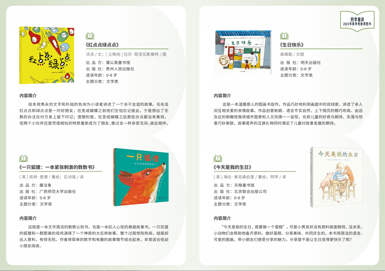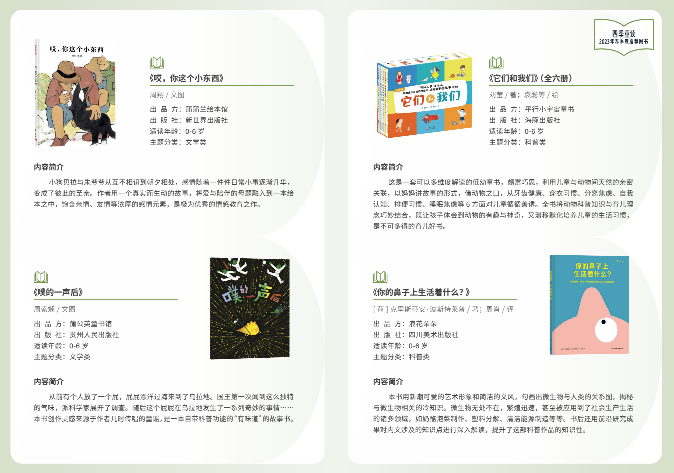附:“四季童讀”春季卷推薦書單(圖片由國家圖書館提供)