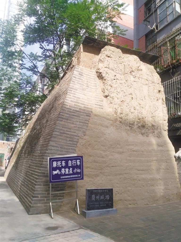 蘭州城墻絕大部分消失于20世紀(jì)50年代,剩余的在改革開放后,隨著城市建設(shè)的飛速發(fā)展而被拆除。蘭州的古城,已經(jīng)在人們的視野中消失。在城關(guān)區(qū)張掖路街道金塔巷東口南側(cè)南關(guān)什字潤城佳園小區(qū)內(nèi),還殘留了一段城墻,是蘭州老城內(nèi)南部城墻的一段,也是明清時期蘭州城墻最后的見證。這段城墻遺址夯土構(gòu)筑,外包砌青磚。南側(cè)表面磚層厚0.7米,長9.1米;城墻東側(cè)土層厚1.2米,現(xiàn)長不足4米,高約7米,城墻上面,還有人建了一間小房子。這是目前蘭州城區(qū)唯一留下的古城墻。1984年10月20日,被蘭州市人民政府公布為蘭州市文物保護(hù)單位。不知道能不能長久保留下去?