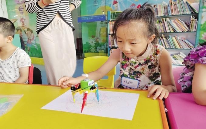 在手工創(chuàng)作環(huán)節(jié),主持人帶領(lǐng)孩子們拼裝可以自動涂鴉的機(jī)器人。孩子們一絲不茍地按照要求分別完成了模型組裝、線路連接、通電啟動等拼裝。當(dāng)小機(jī)器人在高速旋轉(zhuǎn)中帶動畫筆起舞,在白紙上勾勒出一圈又一圈的彩色線條時,孩子們發(fā)出了興奮的驚嘆。