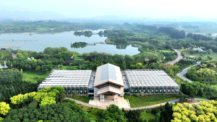 8月9日拍攝的位于河北省石家莊市鹿泉區(qū)龍泉湖公園內(nèi)的一處公園書房(無人機(jī)照片)。