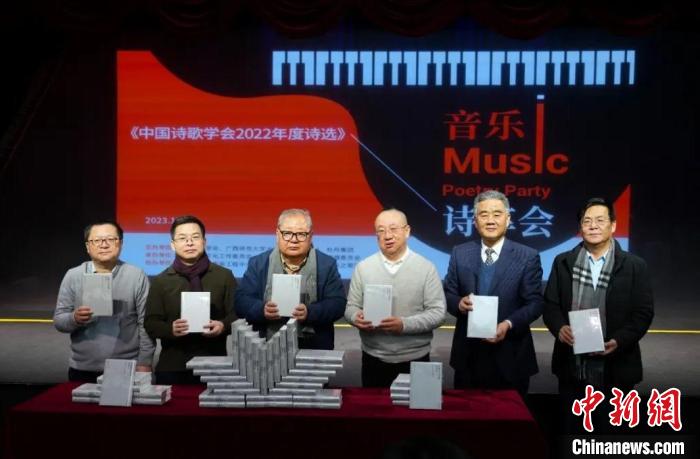 在音樂詩享會上,著名詩人吉狄馬加等嘉賓共同為《在黎明灰色的山脊上:中國詩歌學會2022年度詩選》出版揭幕。