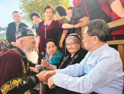王蒙常說一句話:“新疆人民對(duì)我恩重如山。”《在伊犁》《這邊風(fēng)景》中對(duì)大自然的描寫如詩如畫,如歌如訴。他是一位邊疆大地的抒情詩人,他說過:“我們有一個(gè)夢(mèng),它的名字叫做人民。”站在遼闊的伊犁河岸畔,站在巴彥岱的田野上,站在這個(gè)夢(mèng)中,今夕何夕,任重道遠(yuǎn)……