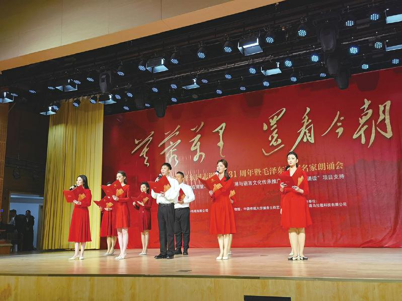 朗誦會上,中國傳媒大學(xué)學(xué)生誦讀毛澤東同志詞作《沁園春·長沙》。 本報(bào)記者 章紅雨 攝