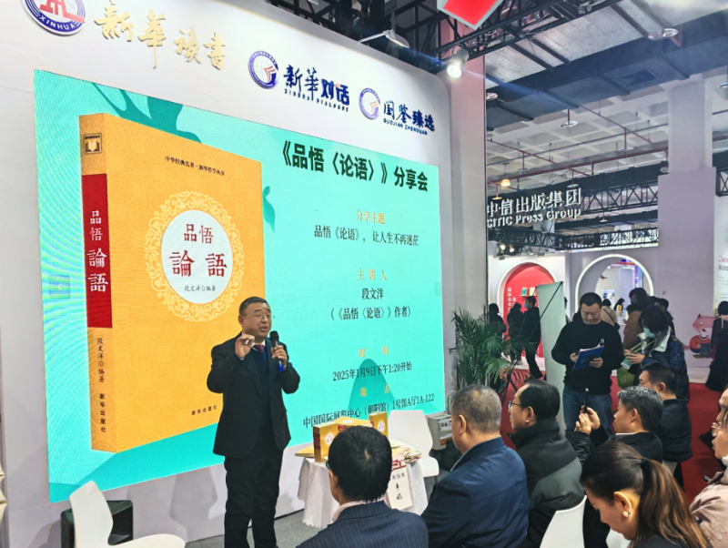 1月9日,2025北京圖書訂貨會(huì)在中國國際展覽中心(朝陽館)開幕。當(dāng)天下午,《品悟〈論語〉》新書分享會(huì)在訂貨會(huì)現(xiàn)場新華出版社展臺(tái)舉行。