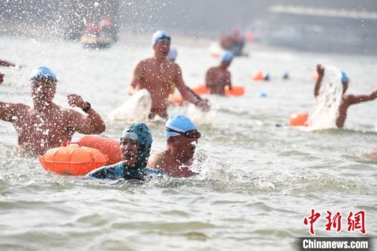 1月1日,“蘭州市第31屆元旦黃河冬泳表演活動”吸引了全國300余名“泳士”參加?!钇G敏 攝