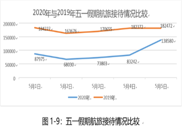 據(jù)浙江省文化和旅游廳發(fā)布的消息,5月1日至5日,浙江省4A級及以上景區(qū)接待游客829.2萬人次,日均接待165.8萬人次,同比下降45.3%(去年日均351.3萬人次,總1515.3萬人次)。據(jù)初步測算,“五一”假期,全省全域旅游人次為7965.1萬,較去年的9240.4萬下降13.8%,實(shí)現(xiàn)旅游收入約57.3億元。
