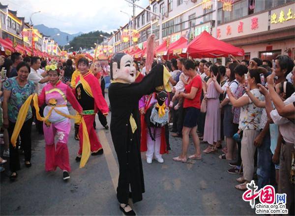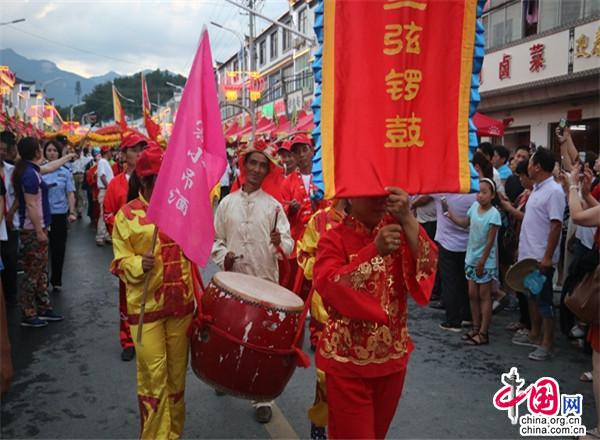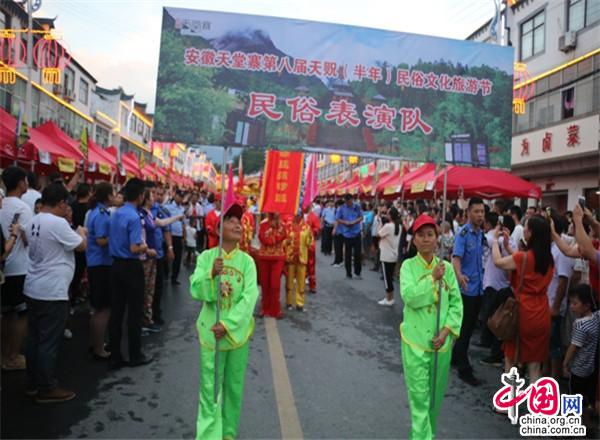 小鎮(zhèn)很熱鬧。小鎮(zhèn)現(xiàn)已入駐了十幾家大型連鎖超市,500多家賓館飯店,300多家購(gòu)物店。每到雙休日,操著各色口音的四海賓客在街上蹓跶、徜徉,或在超市購(gòu)物店里選購(gòu)精美的土特產(chǎn),或在酒店里品嘗著山珍野味,或在KTV里痛快豪嗓,或圍著篝火歡歌勁舞,有的干脆就光著膀子在露天的小吊鍋前劃拳行令,恣意灑脫,好不愜意。每年農(nóng)歷六月初六,天堂寨都要舉辦隆重的天貺節(jié),天堂寨鎮(zhèn)政府門前的一公里主街道兩邊擺起了長(zhǎng)龍似的紅色帳篷,“百家吊鍋宴”成為中外游客免費(fèi)品嘗天堂寨美食的饕餮盛宴。人們一邊喝著小吊美酒,吃著山珍美味,一邊欣賞著穿街而過(guò)的威風(fēng)鑼鼓、騰龍舞獅、儺戲花船、獨(dú)輪推美女、花棍打癡郎等不斷推陳出新的民俗風(fēng)情表演。酒足飯飽之后,再到政府廣場(chǎng)觀看精彩紛呈的文藝節(jié)目。一時(shí)間,人山人海,把一個(gè)千米“長(zhǎng)街”擠得水泄不通;歡聲笑語(yǔ),把一個(gè)深山小鎮(zhèn)匯成了歡樂(lè)的海洋……