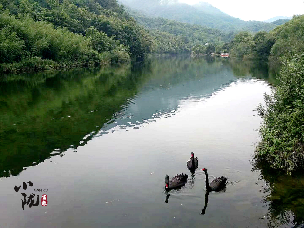 天鵝湖,湖波瀲滟,群山倒映。湖對(duì)面遠(yuǎn)處是一片處處竹林,郁郁蔥蔥。當(dāng)游弋在湖面上的三只黑天鵝,映入眼簾時(shí),感覺此景更像一副渾然天成的水墨畫,湖邊是大片的草地,造型奇特的古樹名木參差錯(cuò)落,石桌與石凳散落其間,靜謐和諧,看書、聊天、放松均是不錯(cuò)的選擇。
