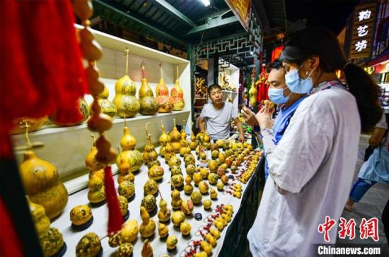圖為游客購買刻葫蘆工藝品。 王斌銀 攝
