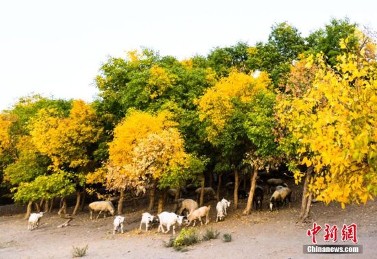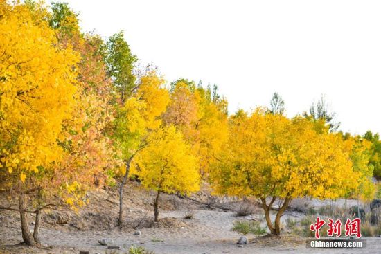 圖為胡楊秋色吸引不少游客和敦煌市民前來(lái)賞秋。 王斌銀 攝