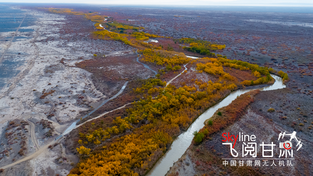 金秋十月,在疏勒河水的浸潤(rùn)下,大片的胡楊金光閃爍,為古老的疏勒河古道繞上了一條金色的絲帶,為河西走廊增添了一道亮麗的色彩,疏勒河正在邁向河暢、景美、岸綠的生態(tài)文明發(fā)展之路。