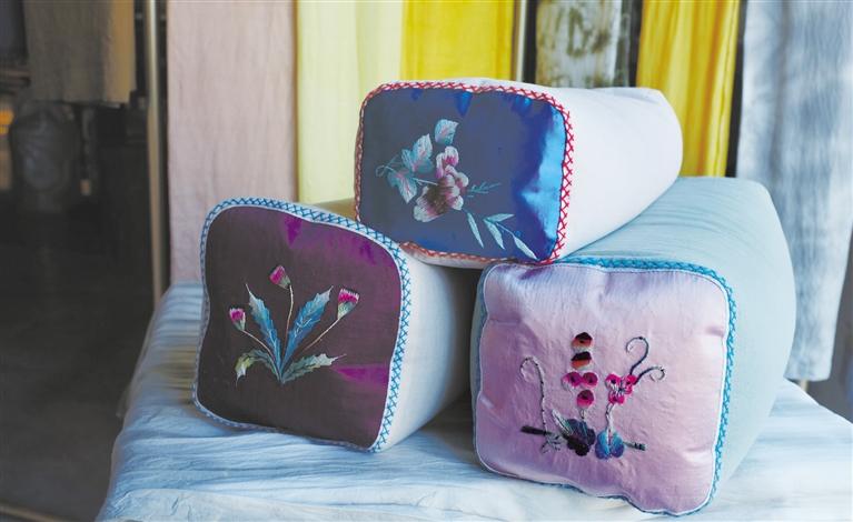 “農(nóng)女手作”制作的非遺文創(chuàng)包括植物染絲巾、手工布包、刺繡小錢包、傳統(tǒng)頸椎保健枕、手工千層底老布鞋、手工刺繡壁掛、手工木梳、手工木飾品等。