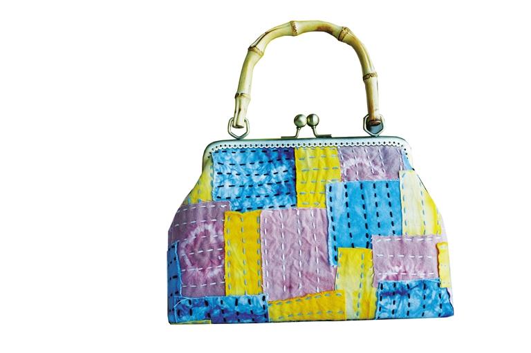 以蓼藍(lán)葉等染材染色的藍(lán)染布及其他植物性染料為原料,運(yùn)用隴西刺繡等手法繪制出各類風(fēng)格的圖案,配以精致口金、各種風(fēng)格的時(shí)尚口金包,既具有觀賞性,又具有實(shí)用性,色彩素雅、時(shí)尚大方。