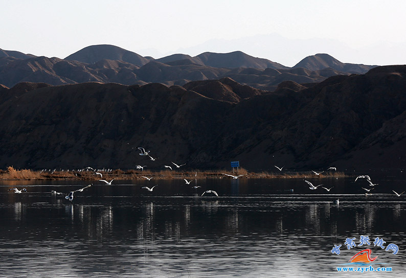 初春時節(jié),山丹縣祁家店水庫濕地成百上千的天鵝、白鷺、灰鶴、野鴨等幾十種鳥類成群結(jié)對,引頸高歌,或追逐覓食,或結(jié)伴翱翔,成為一道亮麗的風(fēng)景線。