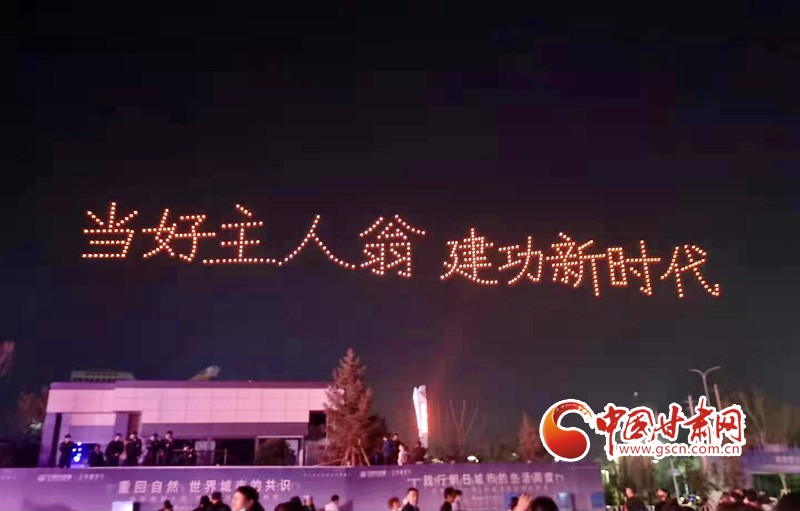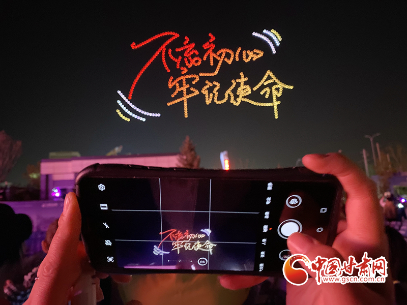 活動現(xiàn)場,千架無人機(jī)編隊以天空為幕,以“熒光”為筆,在金城上空分別繪就“慶祝中國共產(chǎn)黨成立100周年”“蘭州鐵橋”“奧體中心”等數(shù)幅壯美畫面,集中反映近年來蘭州市在經(jīng)濟(jì)社會領(lǐng)域取得的成就。