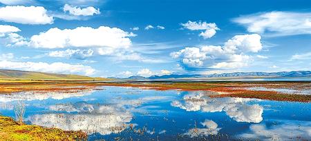 如果你來到這里,可飽覽遠(yuǎn)處草原的天空深邃如井,云如裙裾;鑲嵌于草原之中的湖水像一面明凈的鏡子,倒映著藍(lán)色的天,白色的云;近處的湖面上,鳥飛魚躍等,這些美景定會讓你流連忘返。