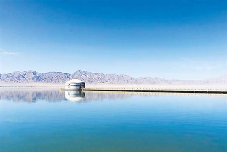 放眼望去,只見那清澈見底的湖水,像一塊純潔無瑕的碧玉,又如一位溫婉的少女,她那婀娜多姿的身影,在這片黃沙浩瀚的大漠中顯得尤為美麗動人,給沙漠和綠洲增添了迷人的光彩,給寂靜的大漠帶來無限生機(jī),也給來這里的游人們一個驚嘆,平添許多感慨和眷戀。沿曲折回環(huán)的青石板路拾級而上,是開闊的沙棗林地,林地周圍,偶見農(nóng)舍菜圃,點(diǎn)綴其間,一幅世外桃源的悠閑景觀。