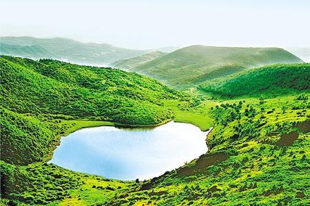 文縣天池,又名洋湯天池,位于隴南市文縣縣城以北約100公里處。由于遠(yuǎn)古時期的地殼活動,致使地殼斷裂,洋湯河河道被堵截,于是在天魏山上,便匯成了狀如葫蘆的一湖碧水,猶如一顆璀璨的藍(lán)寶石鑲嵌在隴南山區(qū)的萬山叢林之中。