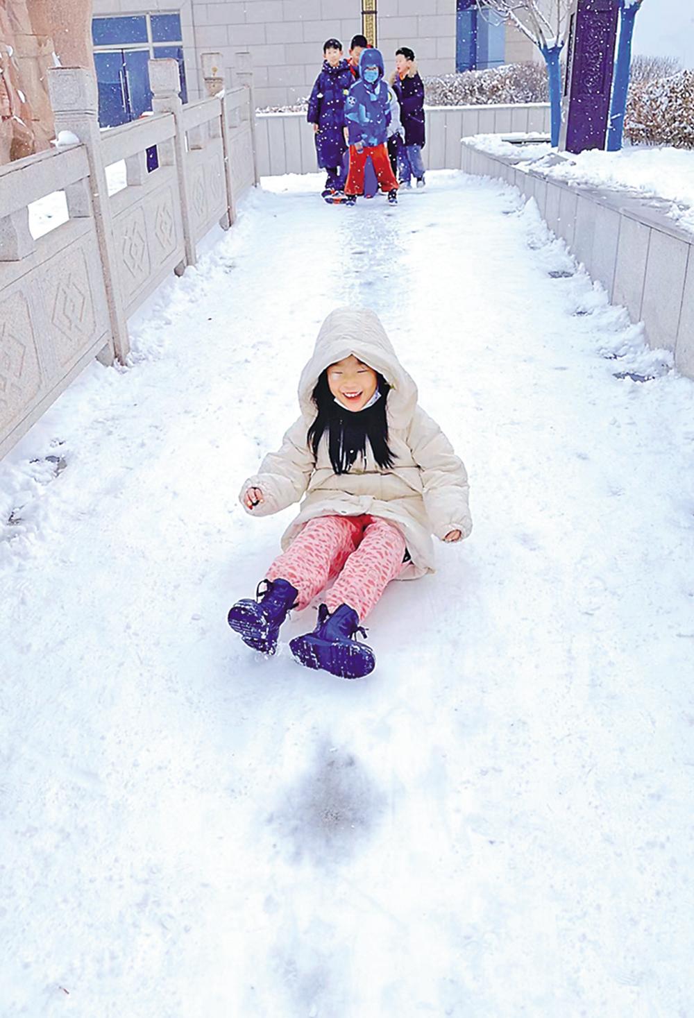 雪中嬉戲 本報記者 張寧寧 攝