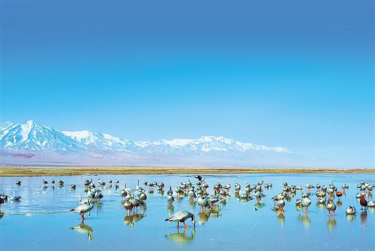 鹽池灣濕地迎來(lái)大批返遷斑頭雁