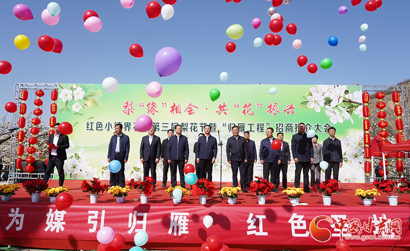 中國甘肅網(wǎng)4月21日訊(本網(wǎng)記者 李紅軍 通訊員 任建祥 馬麗麗)4月20日,平?jīng)鍪徐o寧縣界石鋪鎮(zhèn)李堡村彩旗飄飄、人頭攢動。界石鋪鎮(zhèn)第三屆“梨‘緣’相會·共‘花’振興”梨花節(jié)暨“歸雁工程”招商推介會在這里舉行,各界人士集聚梨園賞花游春,共商鄉(xiāng)村振興發(fā)展之計。