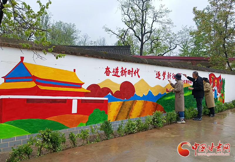 中國甘肅網(wǎng)4月21日訊(本網(wǎng)記者 李紅軍)4月19日,記者走進(jìn)風(fēng)景如畫的成縣陳院鎮(zhèn),發(fā)現(xiàn)一群人揮舞著手中的“畫筆”,在村莊潔白的墻壁上,勾勒線條、填充顏色,一幅構(gòu)思巧妙、色彩絢麗、栩栩如生的墻體彩繪作品讓一面面白墻“活”了起來,村莊環(huán)境更顯生動活潑。
