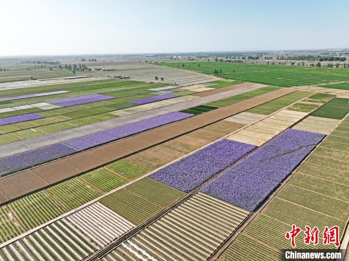 夏日時(shí)節(jié),甘肅省張掖市高臺(tái)縣駱駝城鎮(zhèn)紅新村和梧桐村的田野間,農(nóng)舍青青、遍野吐翠,阡陌縱橫間五彩斑斕,構(gòu)成一幅美麗的田園風(fēng)光畫。