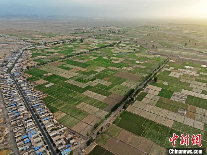 夏日時(shí)節(jié),甘肅省張掖市高臺(tái)縣駱駝城鎮(zhèn)紅新村和梧桐村的田野間,農(nóng)舍青青?!∴嵰隆z