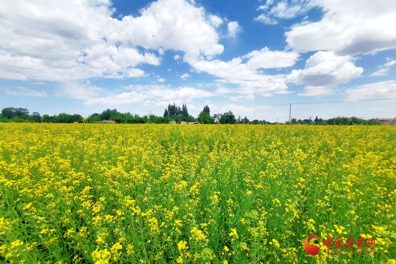 仲夏時節(jié),臨澤縣沙河鎮(zhèn)300余畝油菜花競相開放,層層疊疊的油菜花田黃綠相映,在陽光的照耀下絢麗奪目,將大地渲染成“黃色海洋”。微風吹拂下,黃花綠葉的油菜花搖曳著曼妙的身姿,清新婉約。置身花海,油菜花香撲面而來,讓人頓感心曠神怡。
