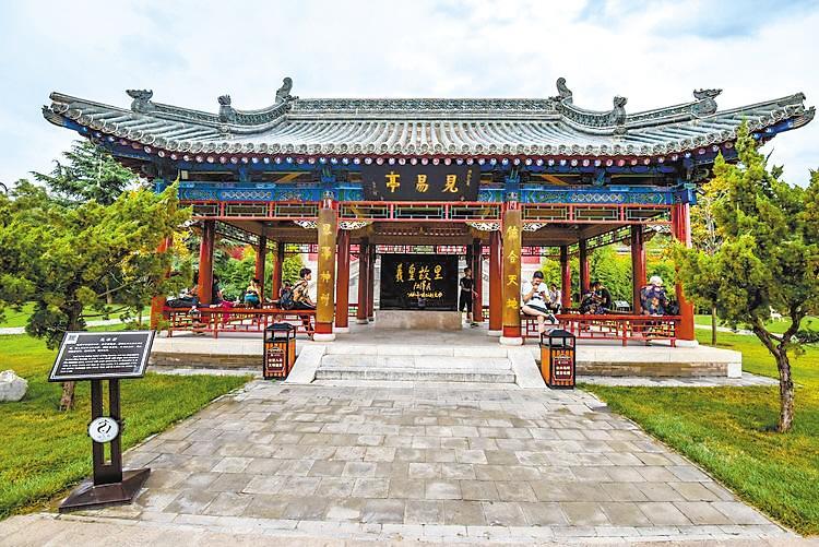 太極殿后是后花園,即伏羲廟第四院。這也真正體現(xiàn)了宮廷式建筑“前有宮,次有寢,后園林”的規(guī)制。“見易亭”居中,坐落在綠茸茸的大草坪上。園內(nèi)植木育花,壘石筑山,碧草修竹,處處風(fēng)景如畫。
