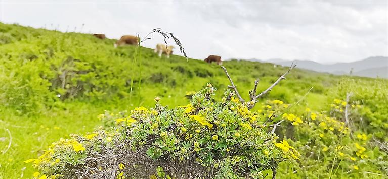 積石山縣黃草坪被譽為“原生態(tài)旅游的樂園”,是我州旅游大通道上的又一處絕美風(fēng)景。圖為6月12日,隨著金露梅的盛開,該景區(qū)迎來大批游客,人們置身其中,盡享大自然的饋贈。