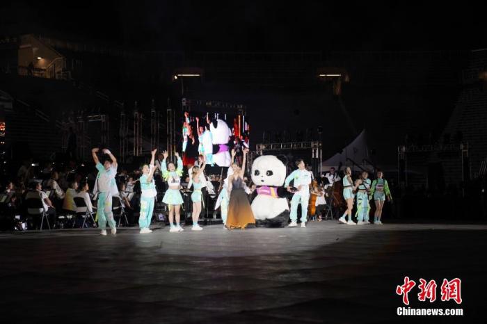 圖為閉幕式現(xiàn)場(chǎng)進(jìn)入“成都時(shí)間”。中新社發(fā) 程軒 供圖