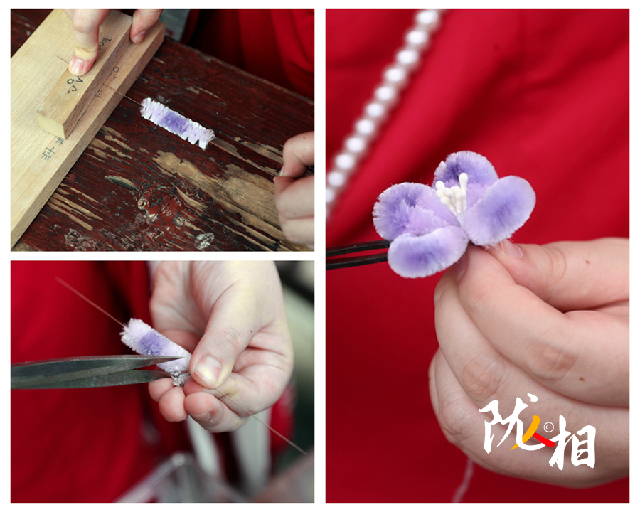 “我也在不斷學習,現(xiàn)在可以用仿點翠工藝,讓簪花更有質(zhì)感。”宗怡彤說道。
