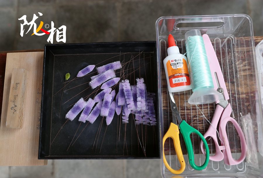 排線、栓銅絲、裁剪寬度、勾挑搓絲、打尖、傳花,每一個制作過程都需要耐心,制作一朵簪花少說也要一周時間。對于宗怡彤來說,學會簪花,也就學會了靜下心來面對一切,在沉浸的時光,心無旁騖,才能享受最終的賞心悅目。