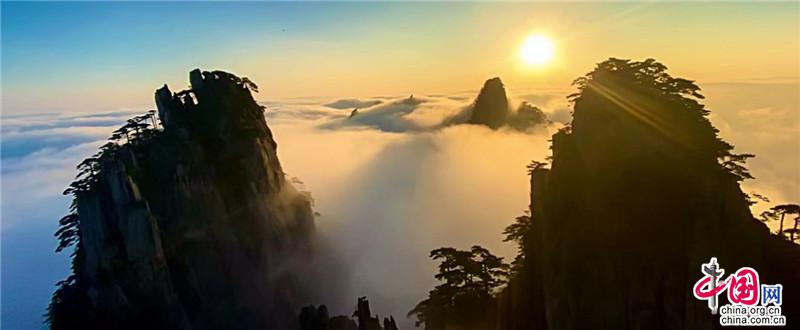 國慶假期遇上重陽節(jié),黃山云海美景讓游客驚呆了。(姚育青)
