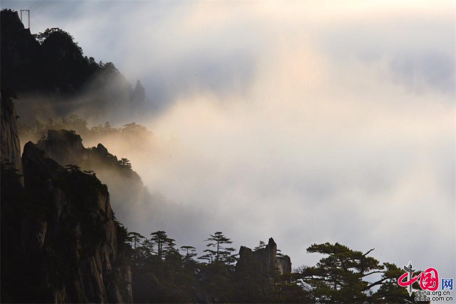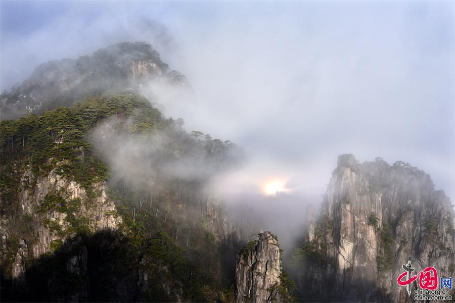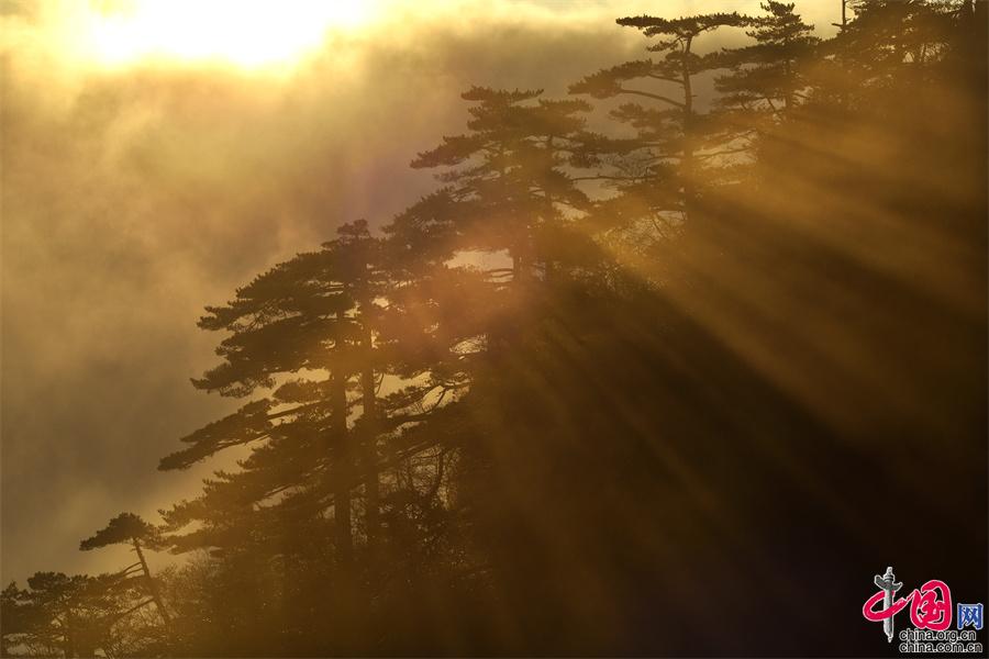 黃山云海佛光霞光齊現(xiàn) 勾勒一幅幅獨(dú)有的勝景