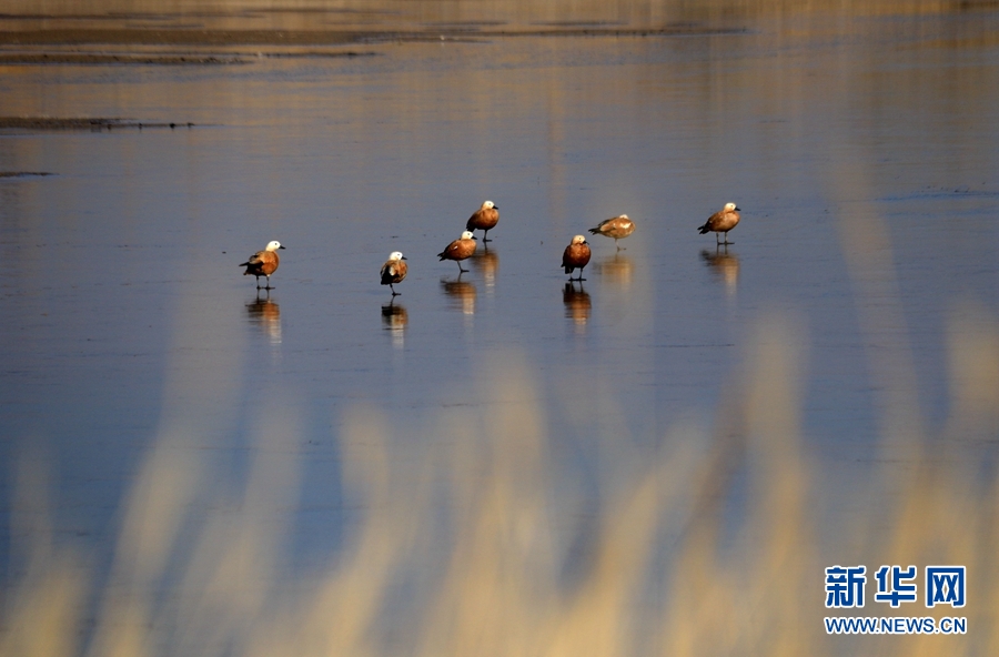 初冬時節(jié),位于鳴沙山下的甘肅省敦煌市黨河濕地,白鷺、綠頭鴨、赤麻鴨、灰雁等候鳥在這里棲息、飛翔、覓食,構成了一幅和諧美麗的生態(tài)畫卷。