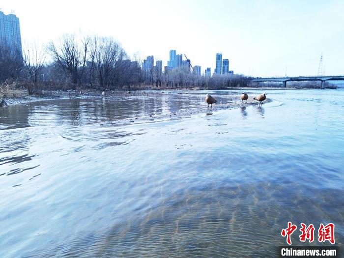 水鳥(niǎo)在松花江流域覓食。 蒼雁 攝