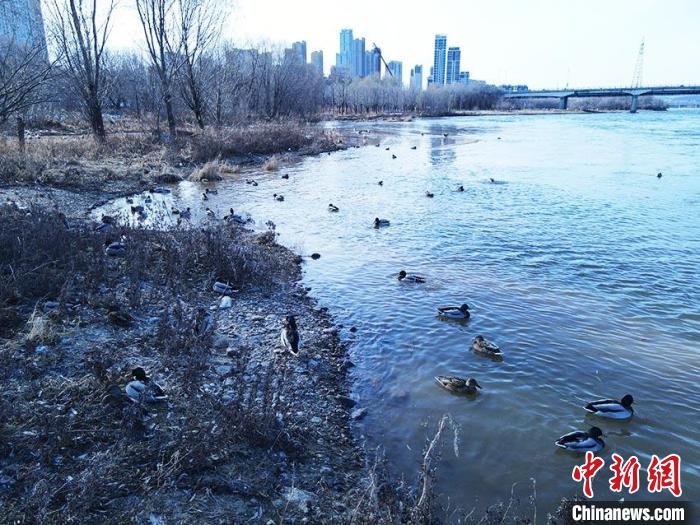 11月22日,小雪時(shí)節(jié)。在吉林市長(zhǎng)白島沿岸,千余只南遷候鳥(niǎo)在此筑巢安家。長(zhǎng)年不凍的松花江流經(jīng)吉林市,位于城區(qū)的長(zhǎng)白島每逢冬季都會(huì)迎來(lái)綠頭鴨、赤麻鴨、秋沙鴨等南遷水鳥(niǎo),它們?cè)趰u上悠然自得、嬉鬧過(guò)冬。
