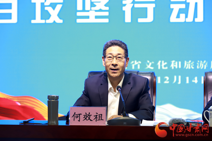 中國(guó)甘肅網(wǎng)12月14日訊 (本網(wǎng)記者 張?zhí)m琴 文/圖)14日上午,甘肅省文旅廳召開“文化進(jìn)萬(wàn)家 旅游迎新春”百日攻堅(jiān)行動(dòng)啟動(dòng)大會(huì),向全省文旅系統(tǒng)吹響了復(fù)工復(fù)產(chǎn)的“動(dòng)員令”,市場(chǎng)復(fù)蘇的“集結(jié)號(hào)”。省委宣傳部副部長(zhǎng)、省文旅廳黨組書記何效祖在蘭州主會(huì)場(chǎng)出席并講話,通過視頻會(huì)議向各市州文旅部門安排部署工作。