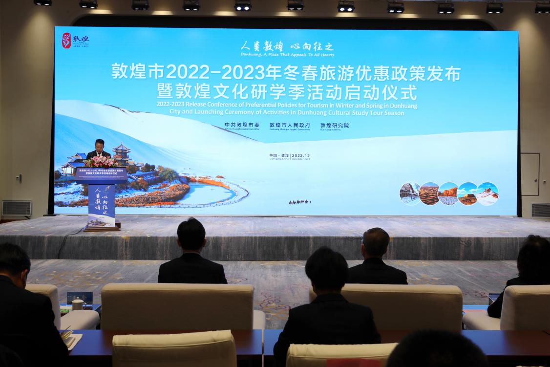 從12月15日敦煌市舉行的2022-2023年冬春旅游優(yōu)惠政策發(fā)布暨敦煌文化研學(xué)季活動(dòng)啟動(dòng)儀式上了解到,甘肅酒泉敦煌市制定出臺(tái)多項(xiàng)冬春旅游優(yōu)惠政策措施,吸引游客、拉動(dòng)消費(fèi),促進(jìn)文旅市場(chǎng)回暖復(fù)蘇。
