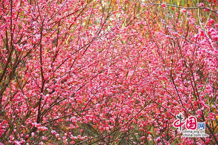 湖南新邵縣委黨校數(shù)千株寒梅迎春綻放。中國(guó)網(wǎng)發(fā)