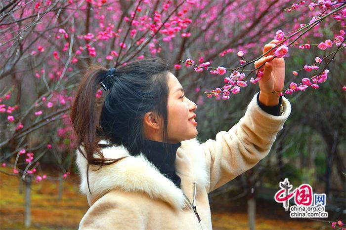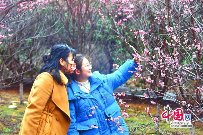 盛開的梅花散發(fā)著幽香,沁人心脾,吸引不少游客市民紛至沓來(lái)弄花探春。(劉佑祥 邱文麗 張海兵)